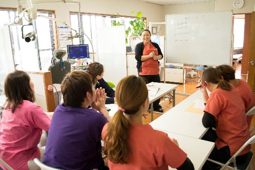 久野歯科クリニックは、仕事面においては、各々に得意分野を任せるようにしています。予防処置・高齢者や義歯・訪問・矯正・コンサルテーション、などがありますが、新しく入った方にはその中のどれか得意になれるようにしていきます。一つでも得意なものが手に入ると仕事がとても楽しくなります。自分の花が咲く場所があると、人は誰でも活き活きとなりますからね!仕事を通してやりがいを見つけてもらい、幸せな人生のお手伝いが少しでもできればと考えています。